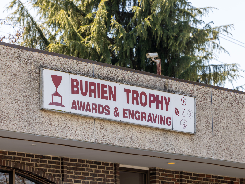 Since 1967 Burien Trophy has provided customers with high-quality custom trophies and awards. As well as creating trophies and awards we also offer laser engraving, rotary/diamond drag engraving, sandblasting, graphic design, and sublimation services too!